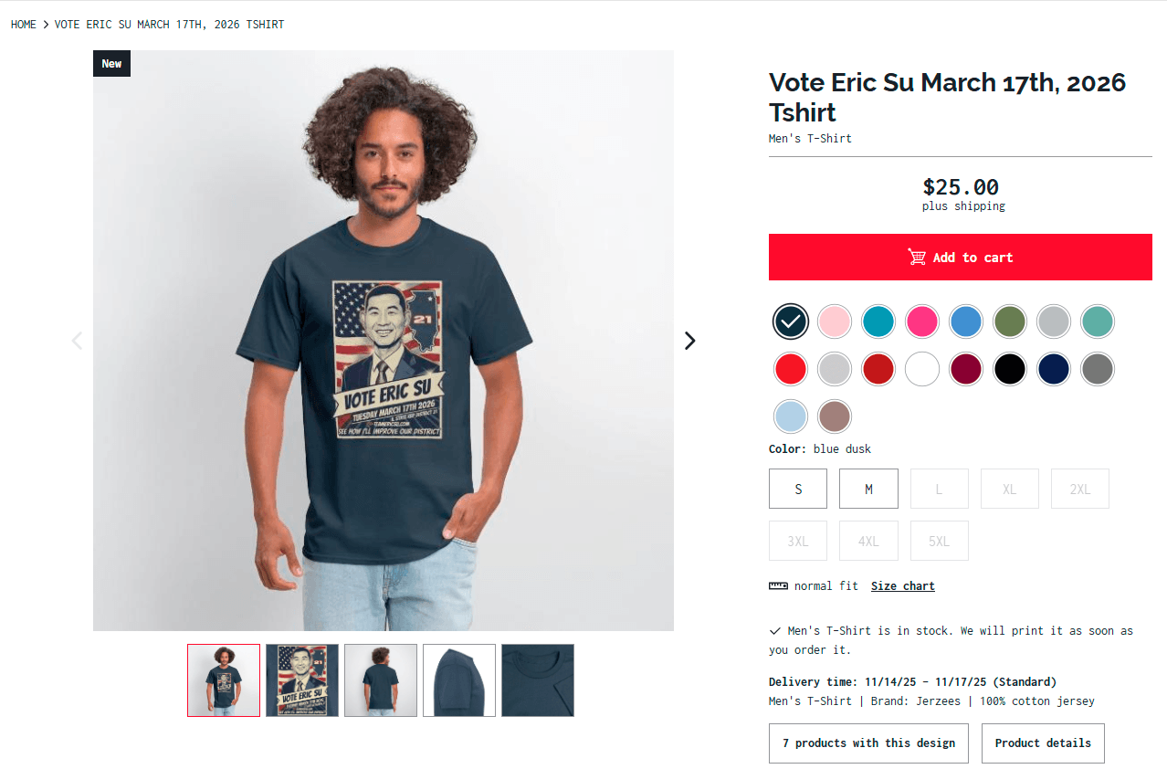 Click the button below to make $1, $5, $10 or more donation to Team Eric Su. Anything you can donate will help Eric Su and his campaign!